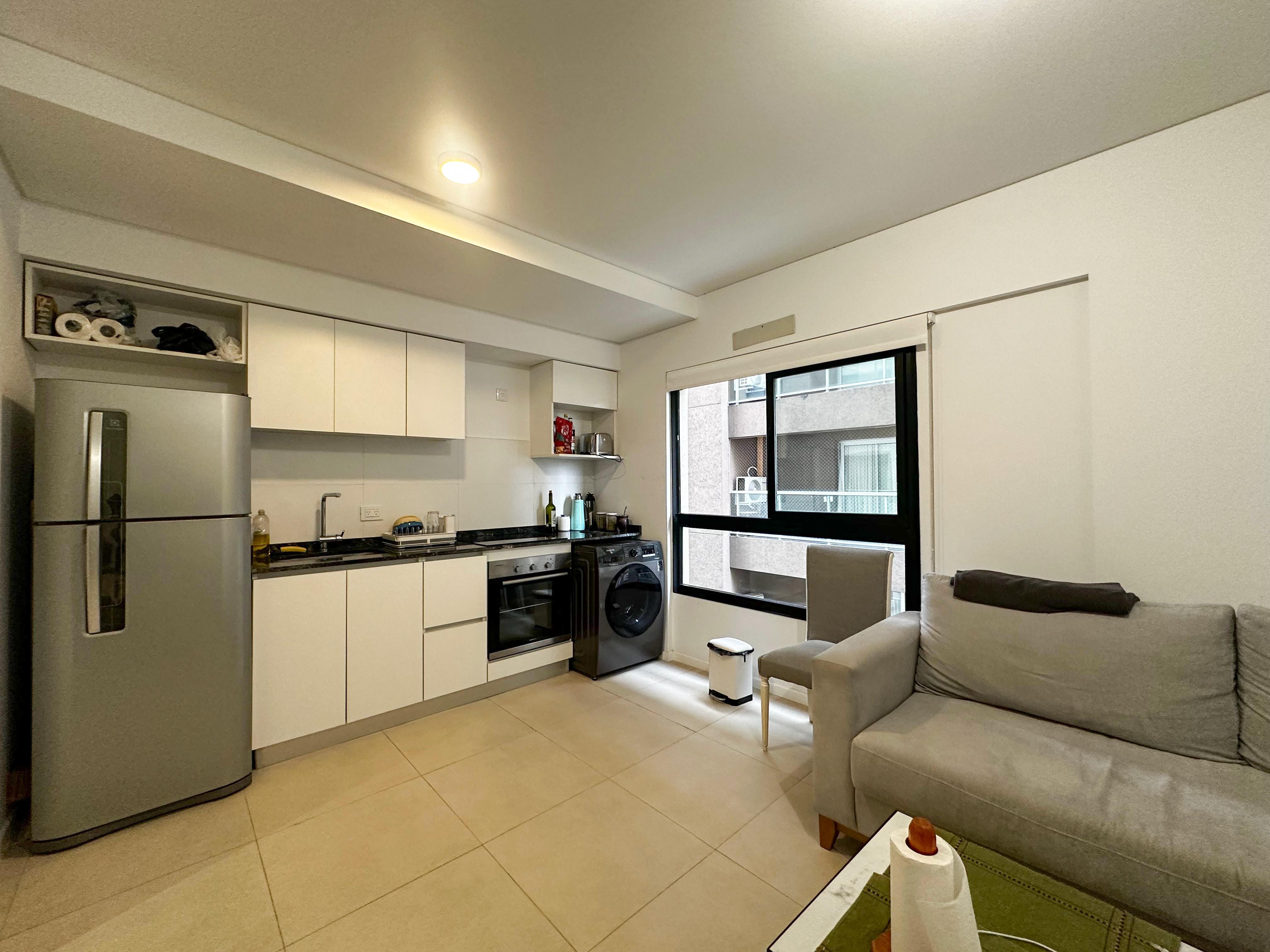 La propiedad cuenta con cocina, living comedor, baño completo, habitación con placard. Todo en excelente estado de conservación. Posesión inmediata. El edificio posee sum y pileta. Bajas expensas.
