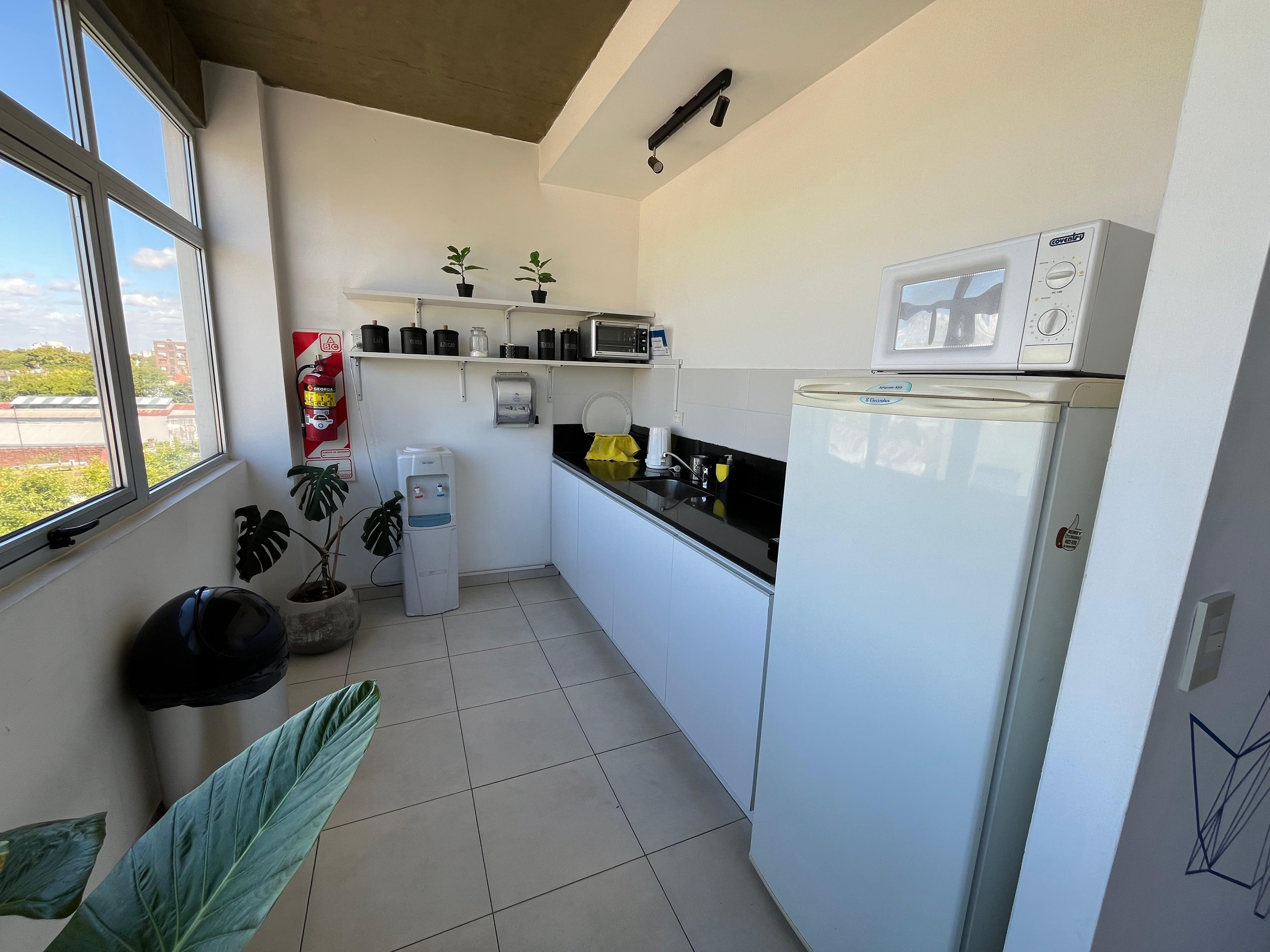 Además, las oficinas pueden entregarse con mobiliario, sujeto a negociación con el inquilino saliente, lo que facilita la instalación inmediata de su equipo. El espacio incluye un área de cocina y comedor destinada al personal, perfecta para momentos de descanso y socialización.