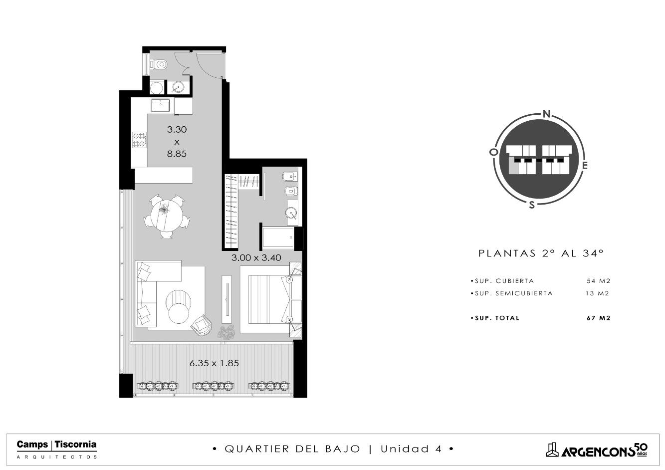 Ideal para aquellos que buscan un estilo de vida contemporáneo y conectado, este departamento ofrece una superficie cubierta de 54 m² más un amplio balcón de 13 m² con vistas panorámicas a la ciudad y al río. El departamento cuenta con cochera cubierta.