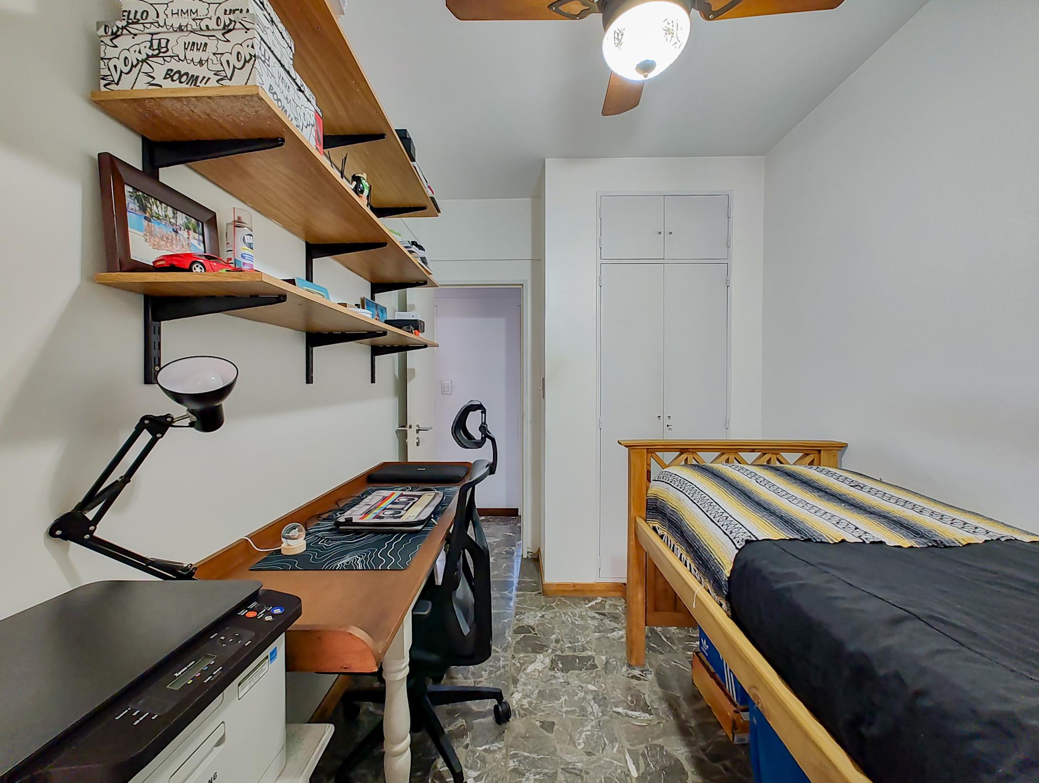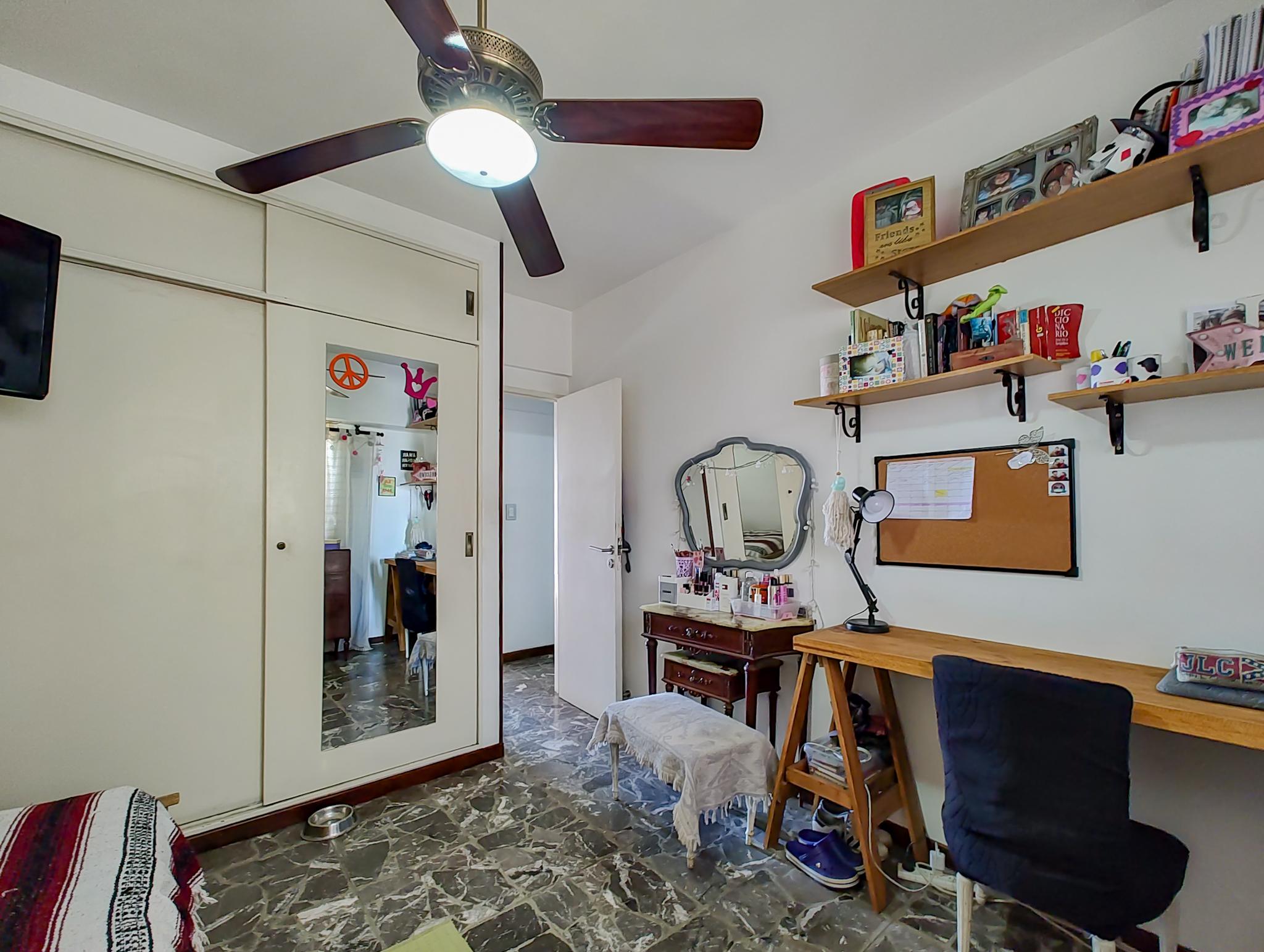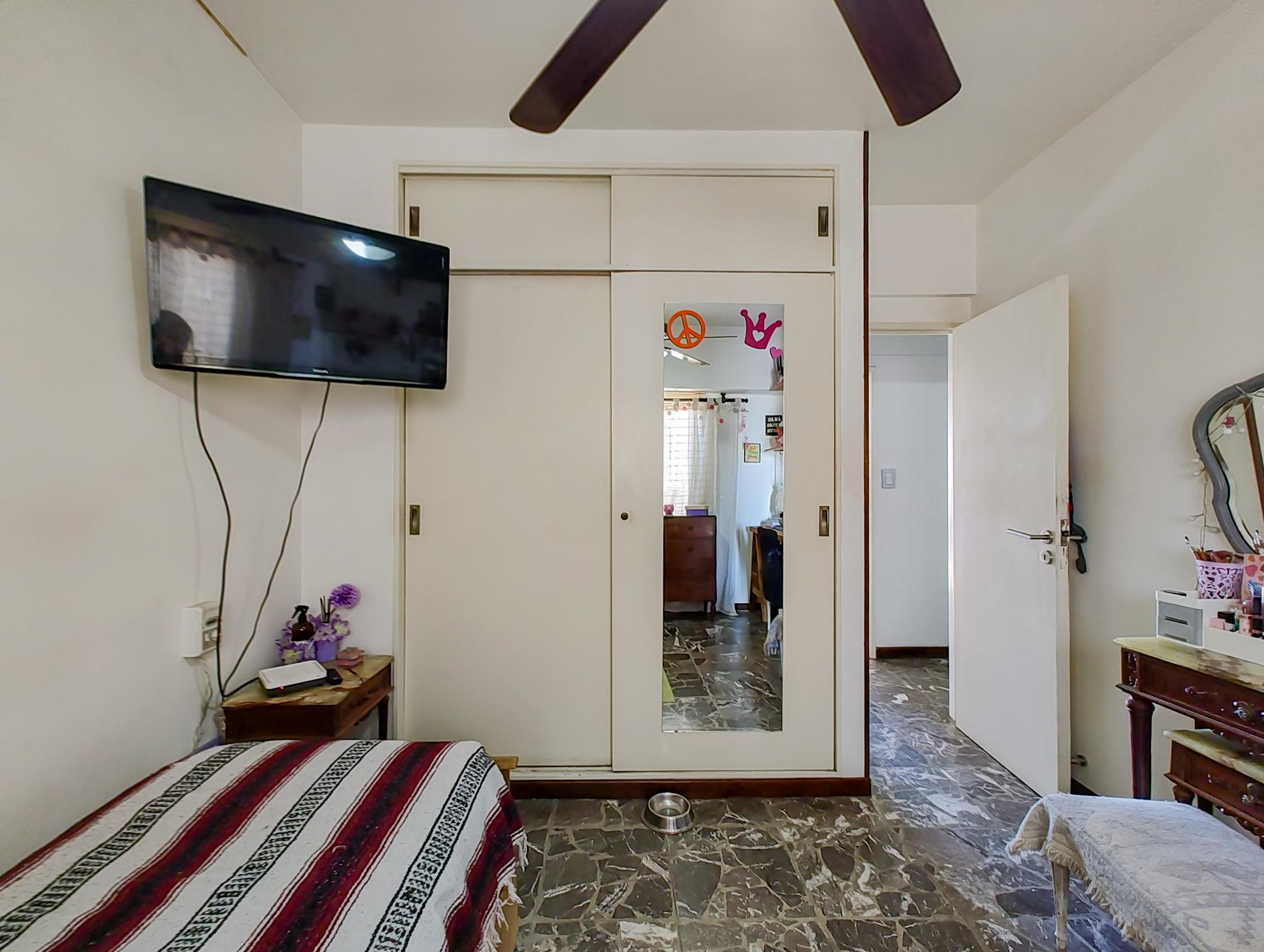 -Habitación principal 3,08m x 3,08m con salida al balcón y placard empotrado.