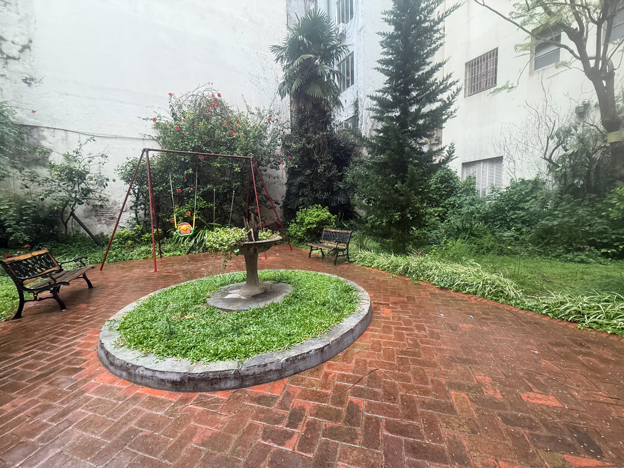 Gracias al jardín que separa ambos cuerpos, el departamento ofrece una vista agradable al verde y un entorno muy silencioso, ideal para quienes buscan tranquilidad en plena ciudad.