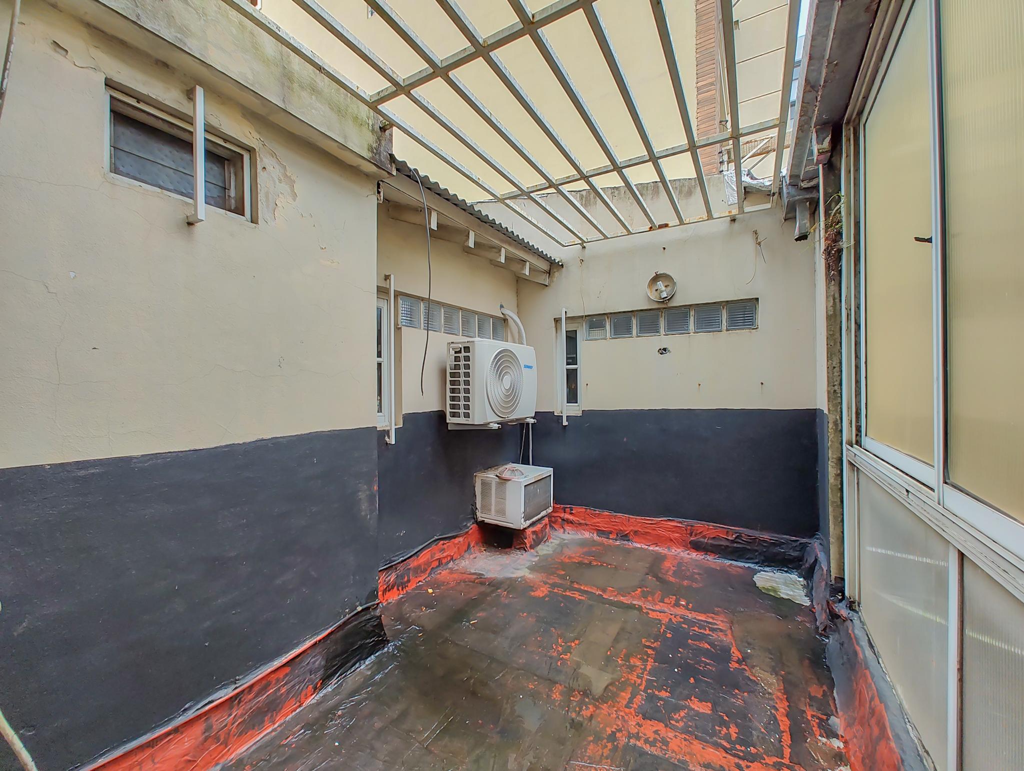La casa se desarrolla en planta baja, siendo la única casa baja de la cuadra, lo que la