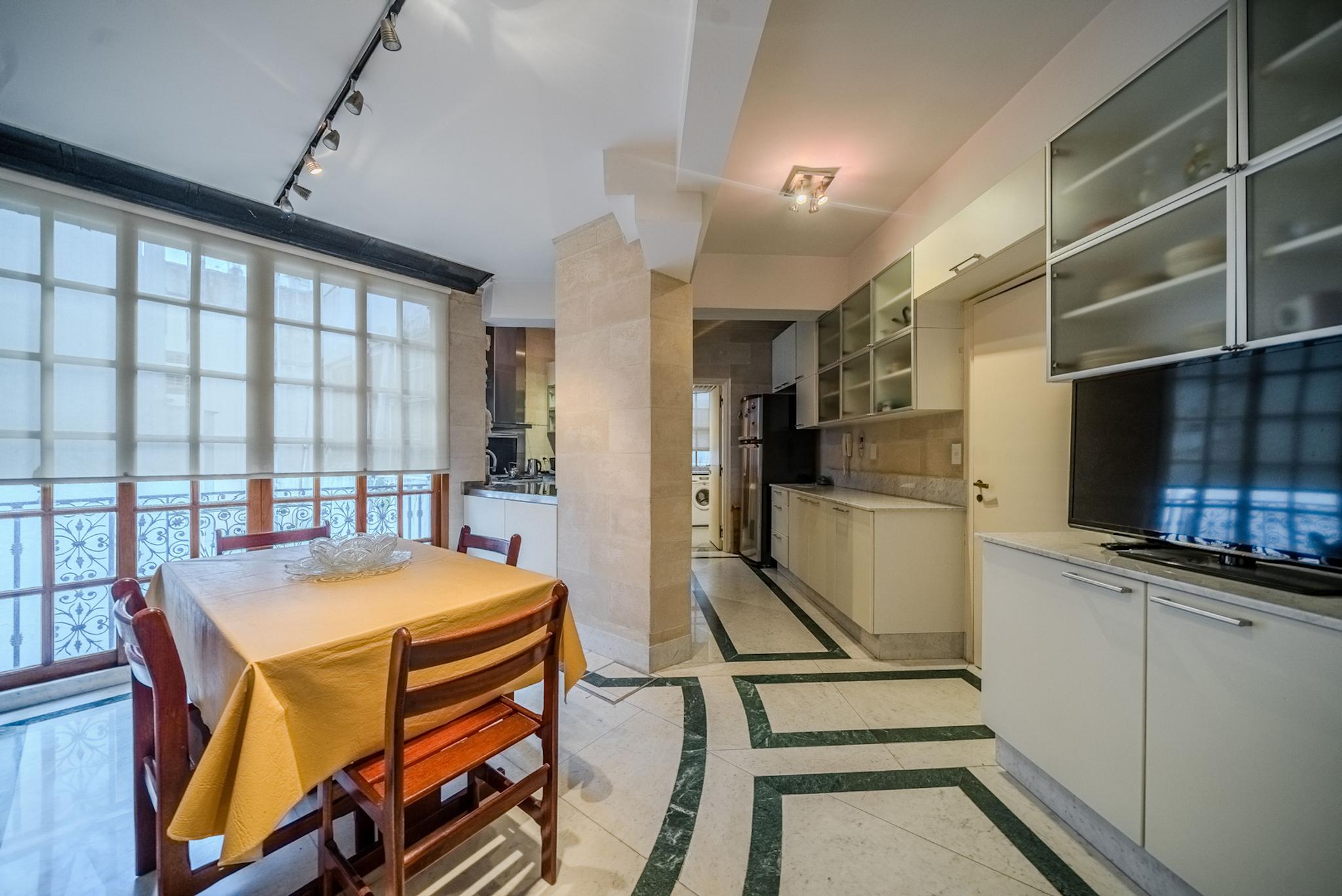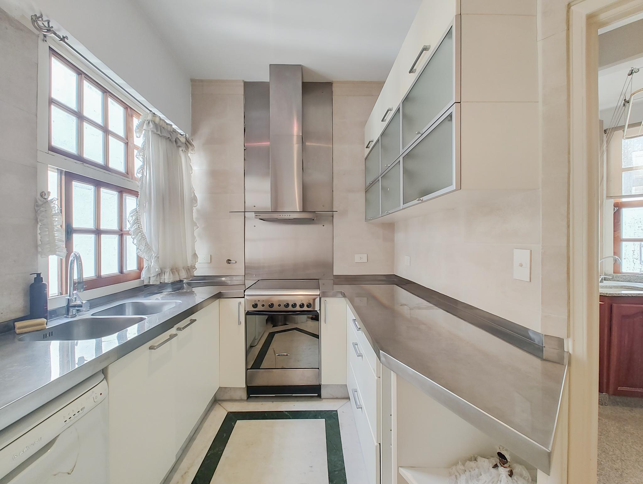 La cocina es amplia y funcional, con comedor diario, lavadero independiente y dependencia de servicio.