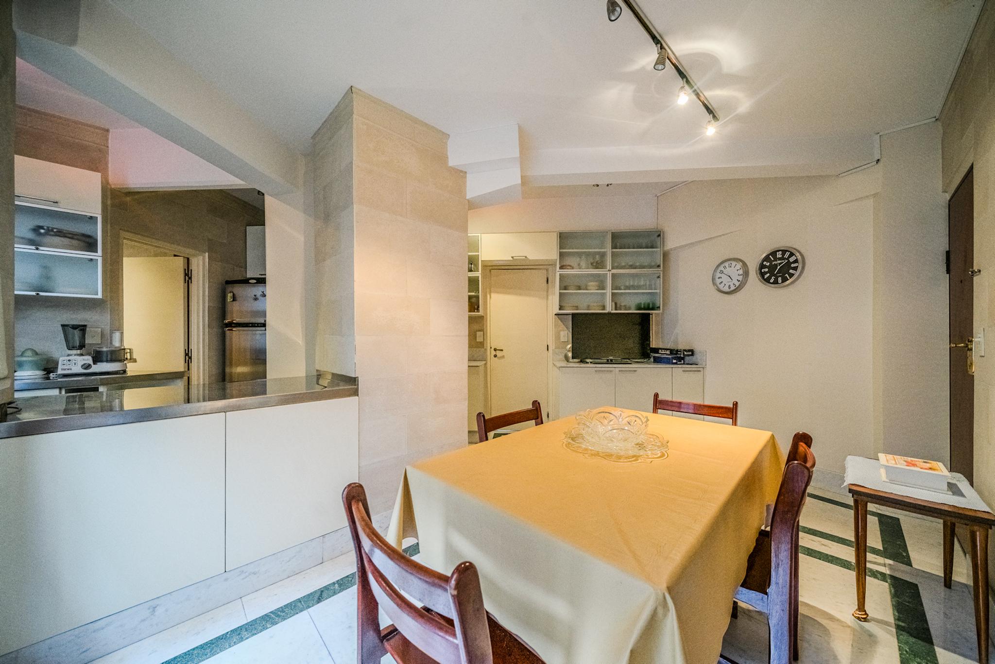 Cuenta con palier privado, doble ingreso (principal y de servicio) y un amplio hall de recepción que conduce a un generoso living con grandes ventanales y salida a balcón. El comedor independiente, de cómodas dimensiones, completa el sector social ideal para recibir.