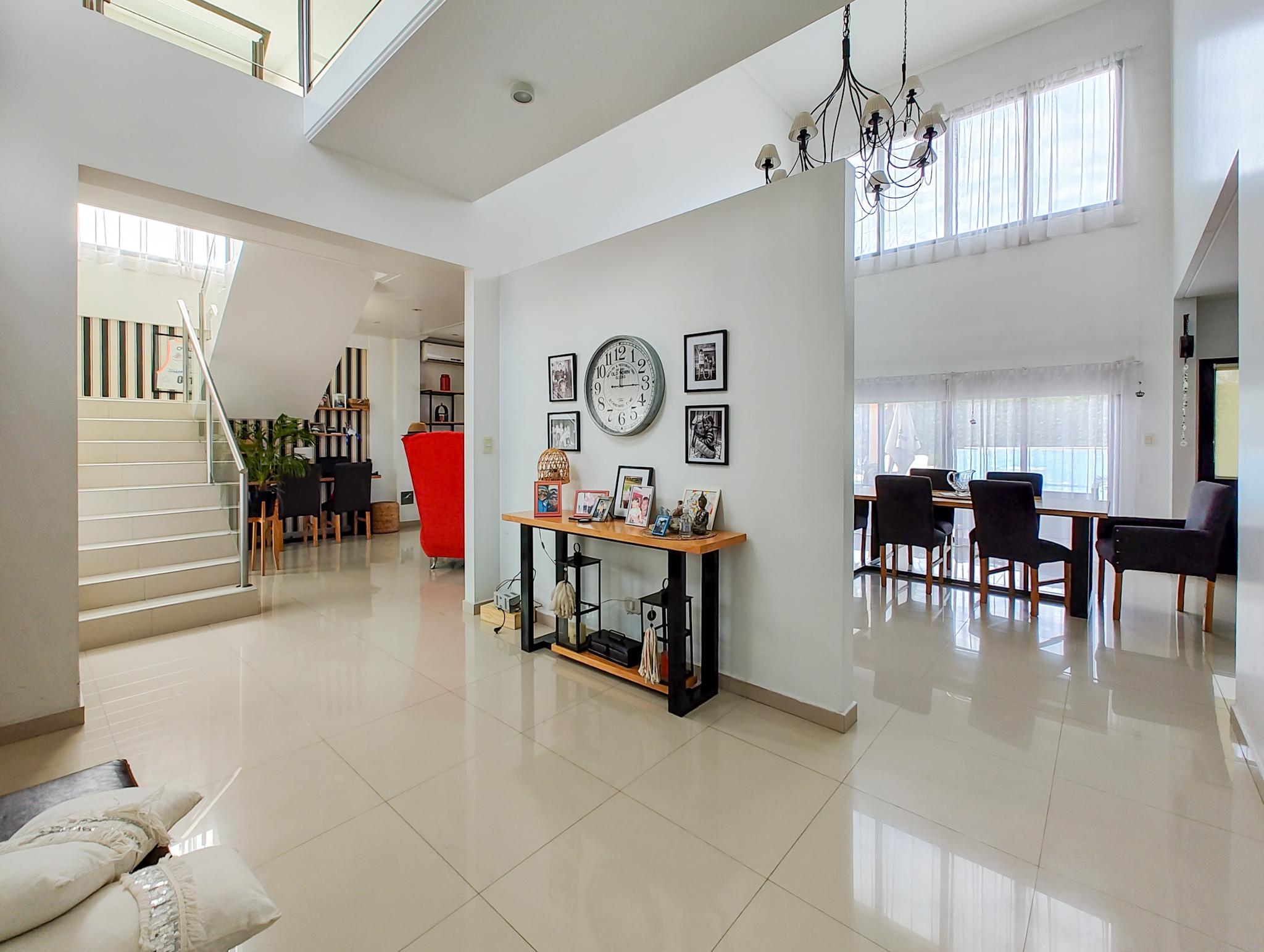 Al ingresar nos encontramos con un Hall recibidor con doble altura, living