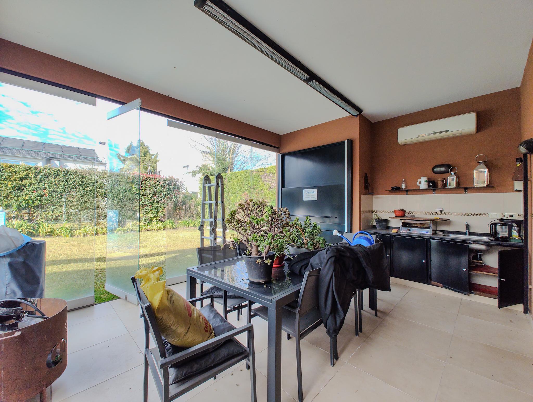 galería cubierta con vidrios corredizos y parrilla.