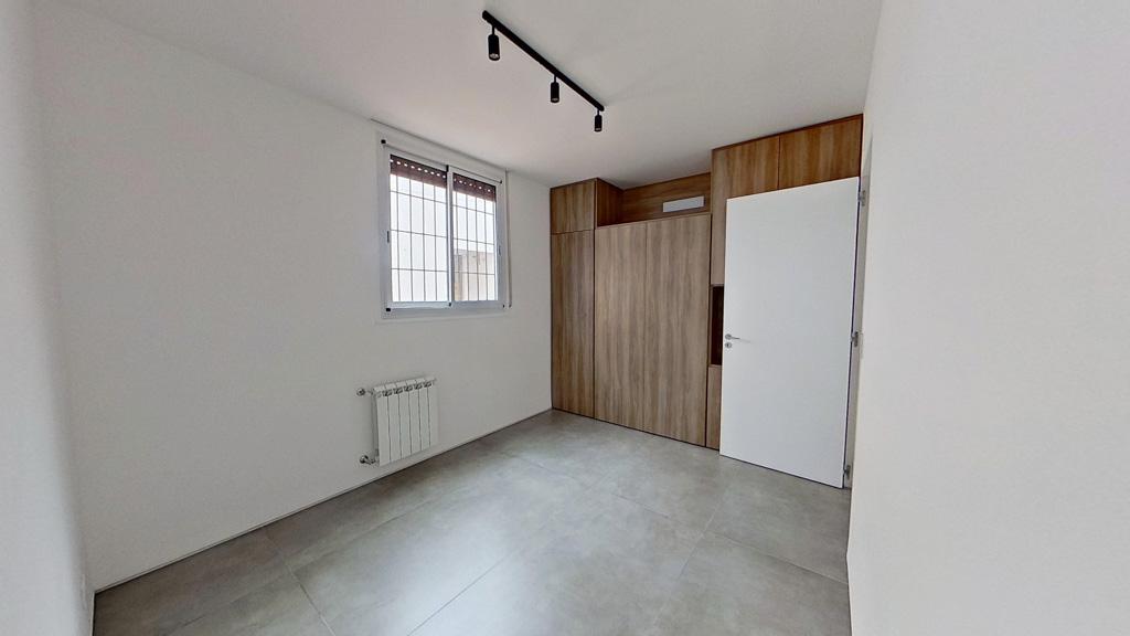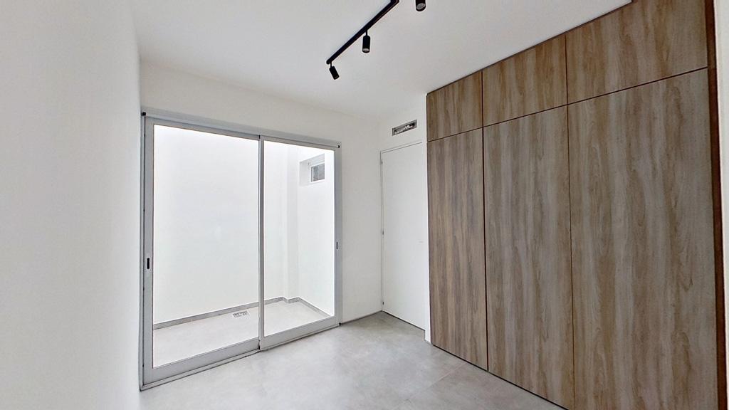 2 habitaciones. Habitación principal (3,95m x 2,80m) y habitación 2 (2,93m x 2,89m) con salida a patio de 4 m2. Ambas habitaciones con placard e interiores ya colocados.