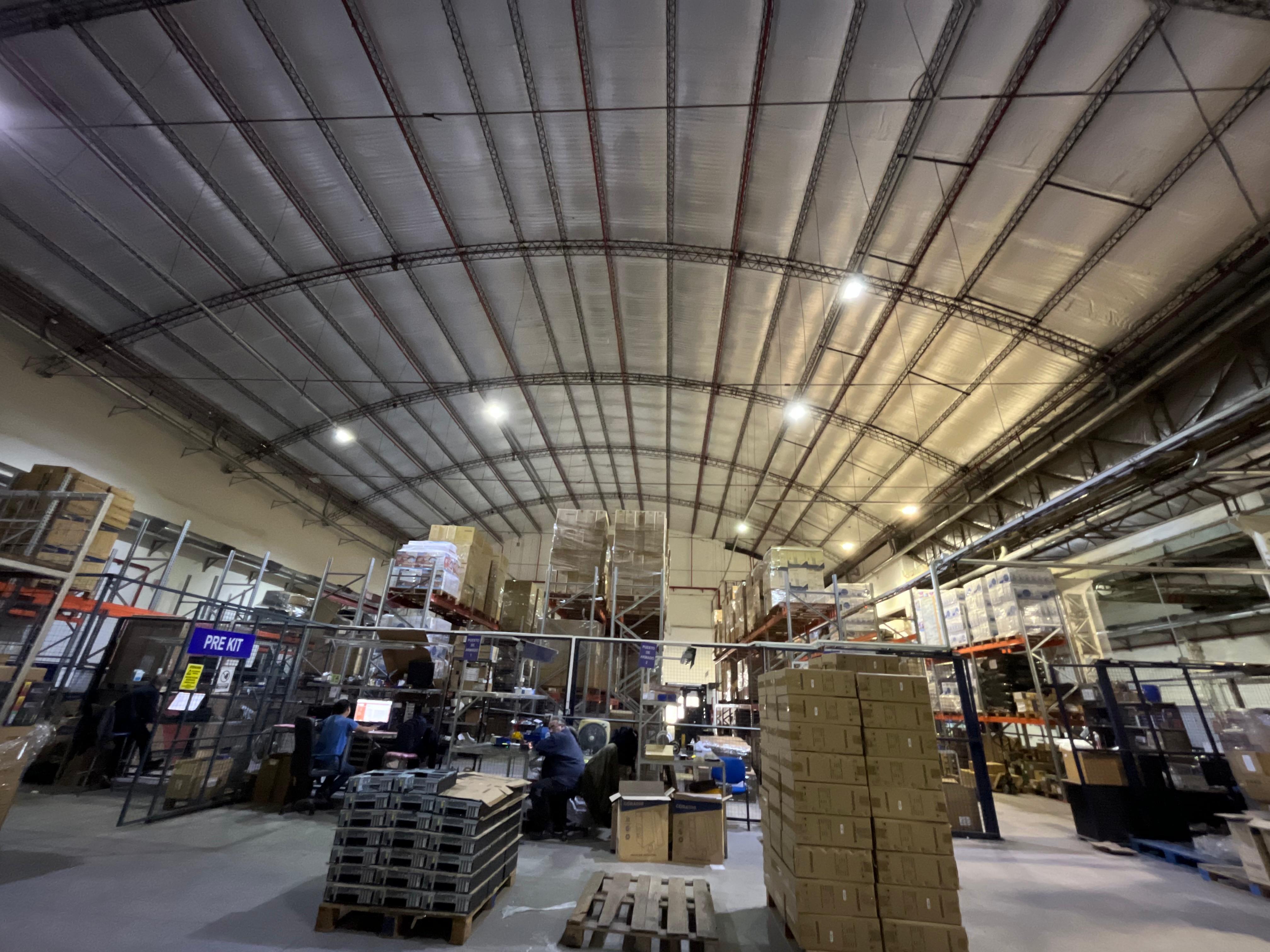 Una de las naves posee, techo parabólico con aislante termico, con una altura de 8 m a la parte mas baja y a 12 m al centro. Y la otra nave tiene techo a dos aguas, también con aislante termico, con una altura de 6,9 a la parte mas baja y a 8,59 m al centro.